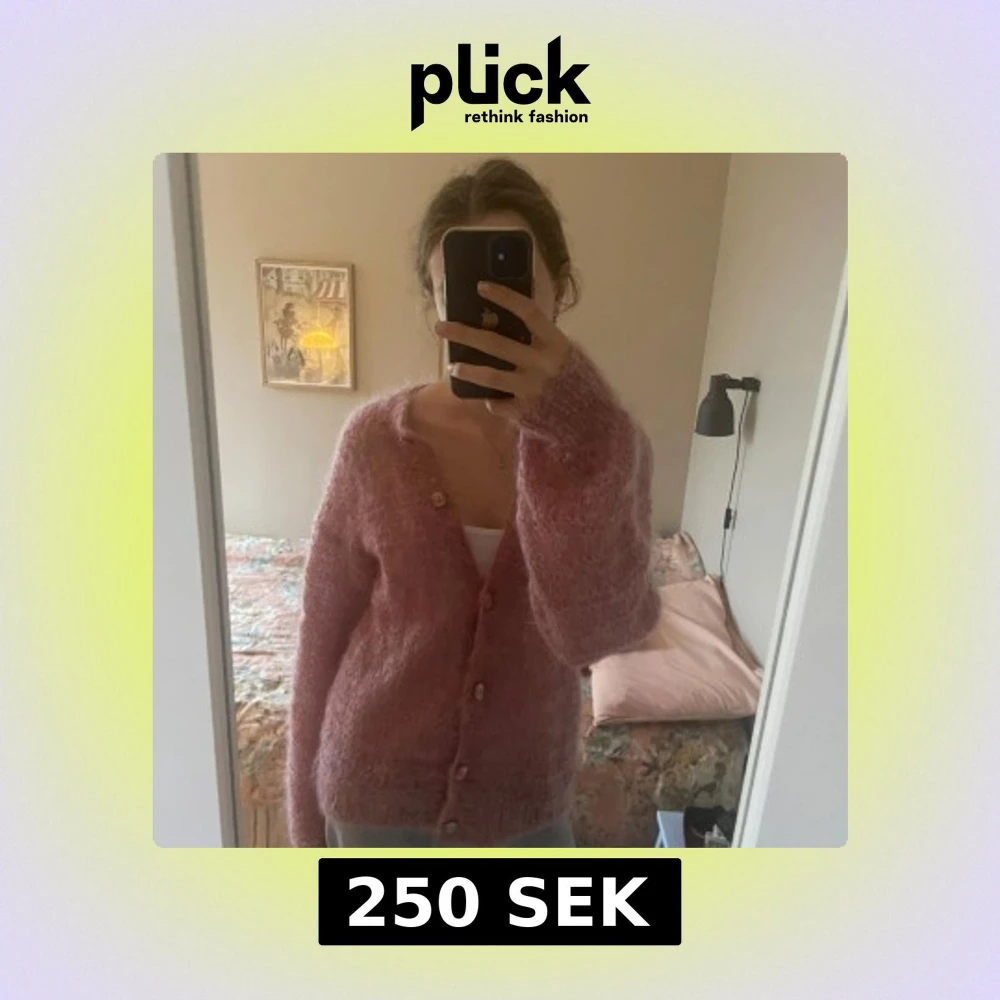 Mysig rosa kofta med fluffig känsla. Tidigare köpt från Vinted och säljer då den inte används. Superfin, finns ingen storlek då den är egenstickad men skulle säga S/M. Den är ganska lång.