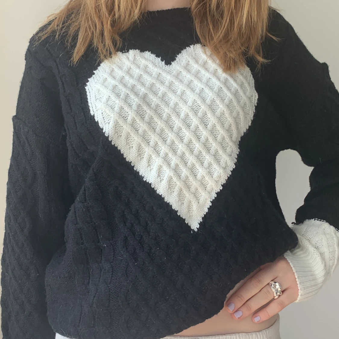 Säljer denna fina stickade tröja med ett hjärta på! Är i fint skick och knappt använd. Kan diskutera pris.