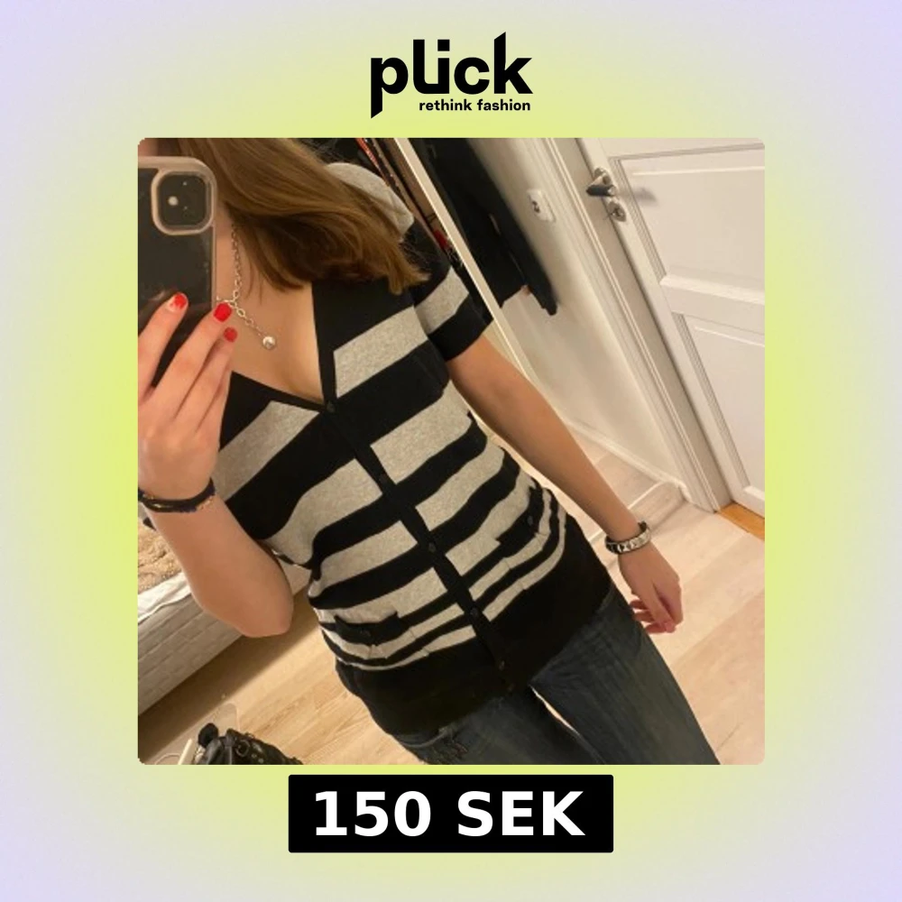 Snygg svart och grå kofta med breda ränder från LC Waikiki. Kortärmad med v-ringning, knappar hela vägen och två små fickor framtill med knappdetalj. 💞💞👌