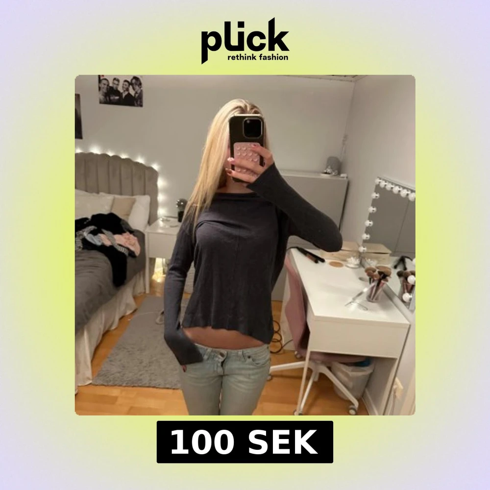 Mörkgrå långärmad stickad tröja med lite croppad passform och rå kant nertill. Tröjan har en enkel design med rund halsringning och långa ärmar som går ner över händerna. Perfekt för lager-på-lager och chill vibes.