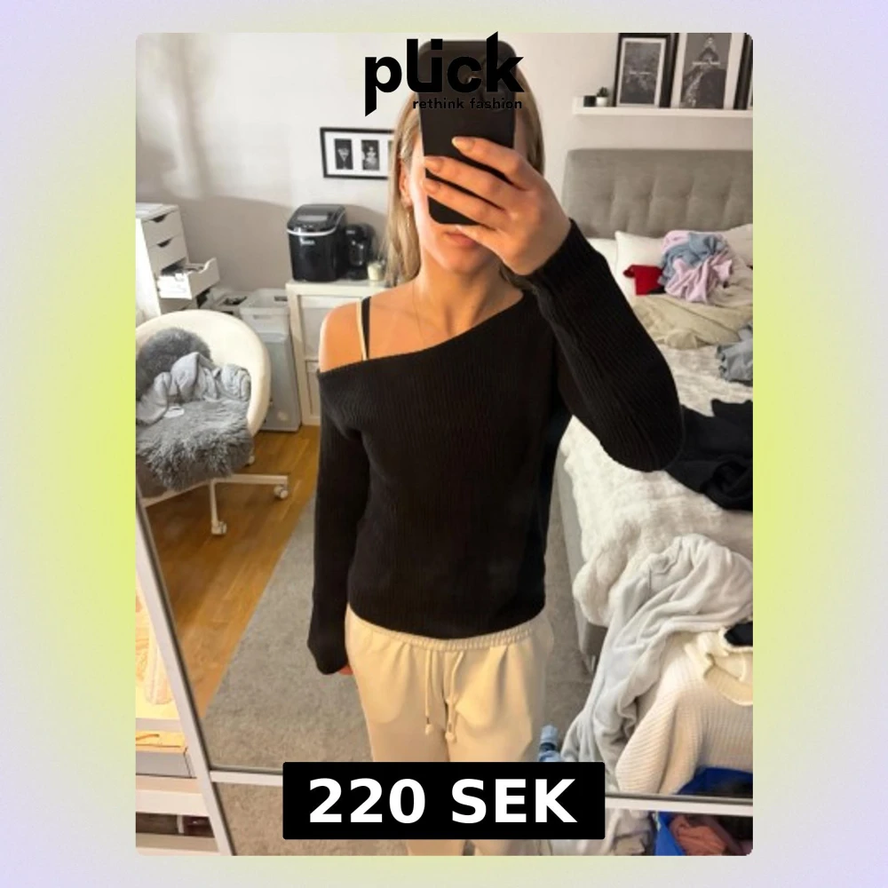 Säljer denna lite mer hårda stickade tröja som är offshoulder. Väldigt enkel men snygg, ribbad design. Bra skick
