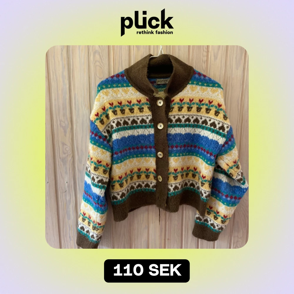 Säljer en superfin och färgglad kofta från Stradivarius i storlek XS. Den har ett härligt mönster i blått, gult, brunt och rött med knappar framtill. Perfekt för höst och vinter när du vill ha något mysigt och stiligt. 🧡