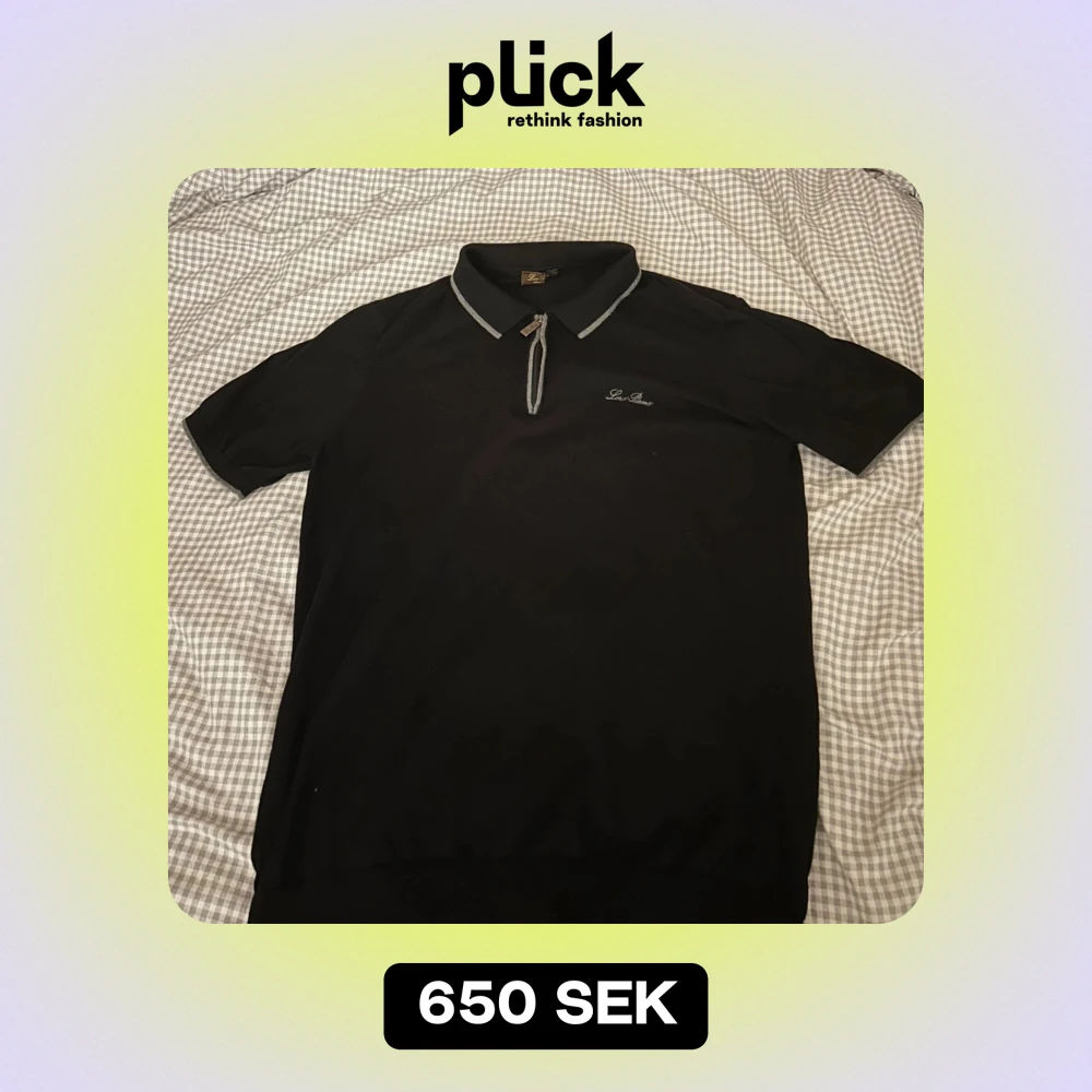 Säljer en stilren svart pikétröja från Loro Piana. Den har en klassisk krage med dragkedja och korta ärmar. Perfekt för både vardag och lite finare tillfällen. Tröjan är i bra skick och passar till det mesta i garderoben. Skicka ett meddelande vid intresse!