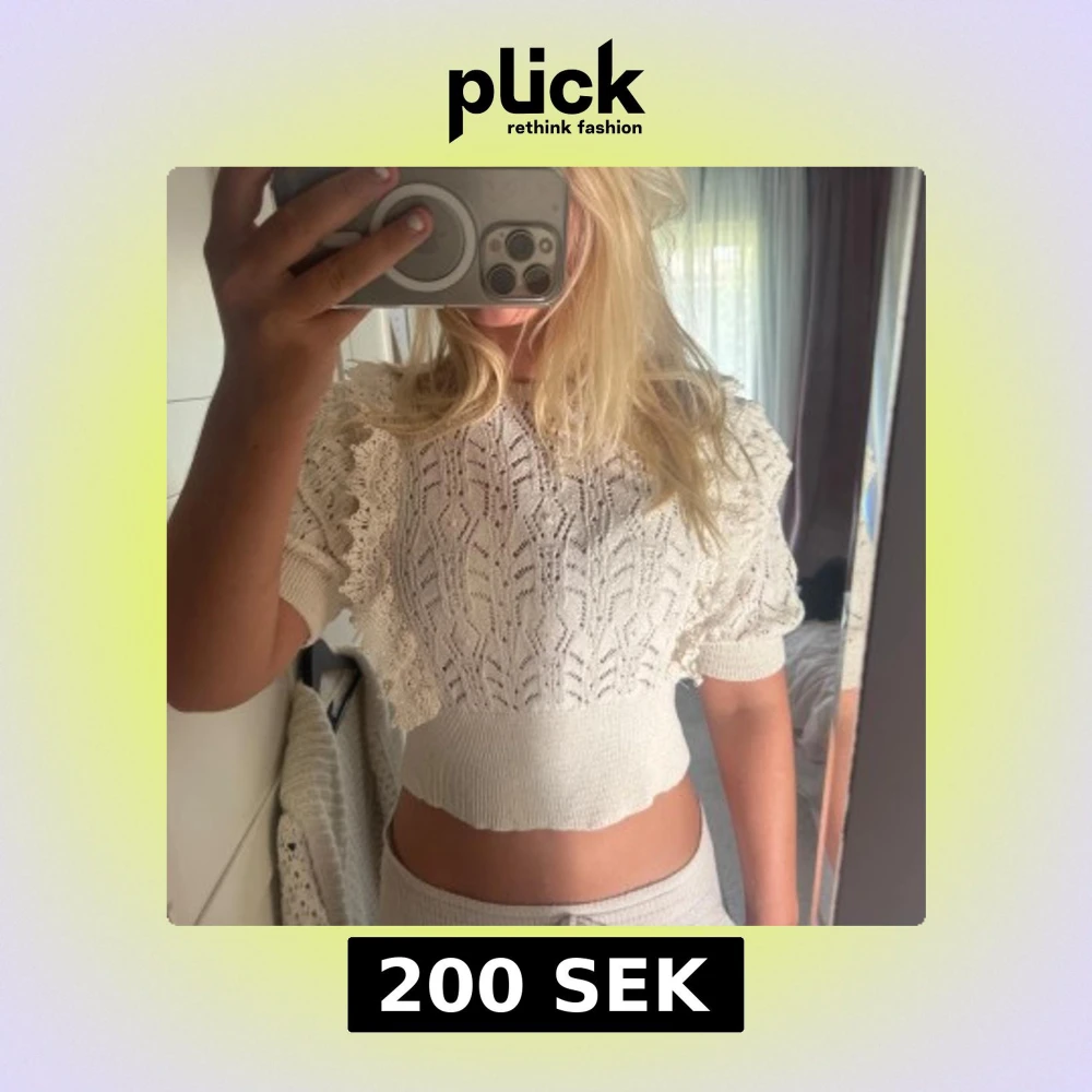 Superfin vit stickad blus från zara med korta ärmar och croppad passform. Använd fåtal gånger.