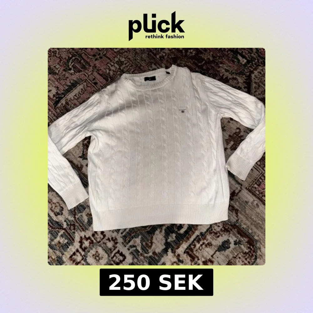 Vit kabelstickad tröja från GANT med rund hals och diskret logga på bröstet. Tröjan har ribbade muddar vid ärmslut och nederkant, och är långärmad. Perfekt för dig som gillar klassisk och clean stil.