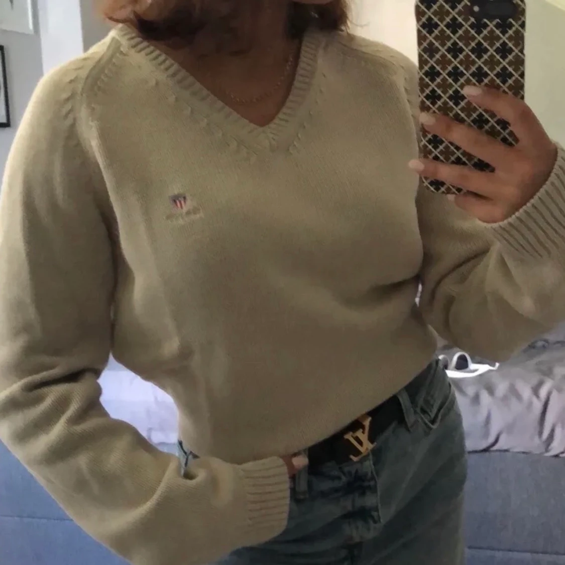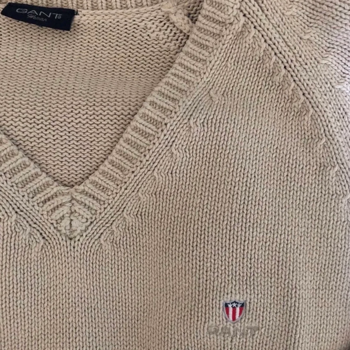 En beige stickad sweatshirt från gant. Skonsamt använd, har dock en fläck eller vad man ska kalla det nertill, skriv privat för bild. Passar XS-M beroende på hur man vill att den skall sitta! Köpare står för frakt, kontakta vid övriga frågor