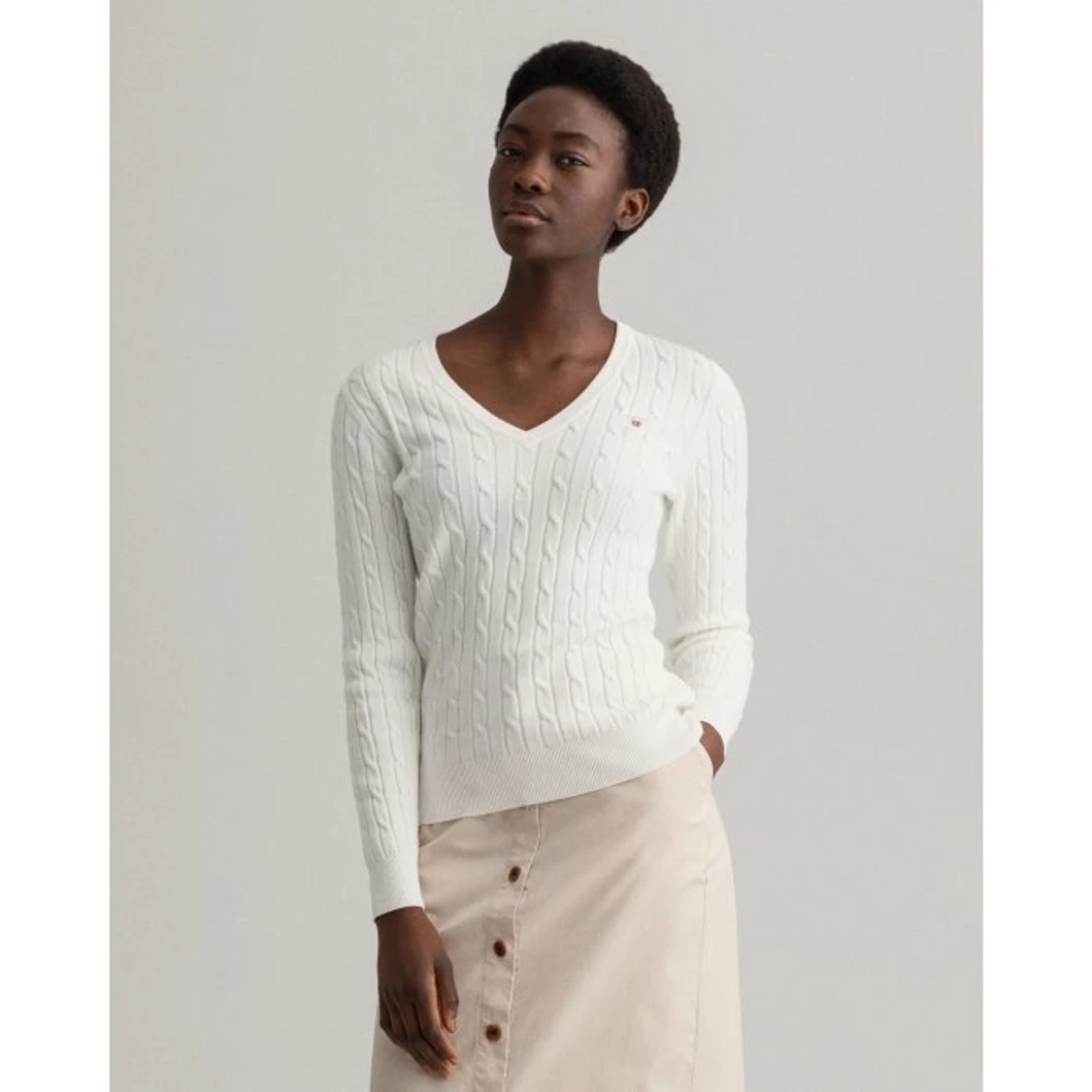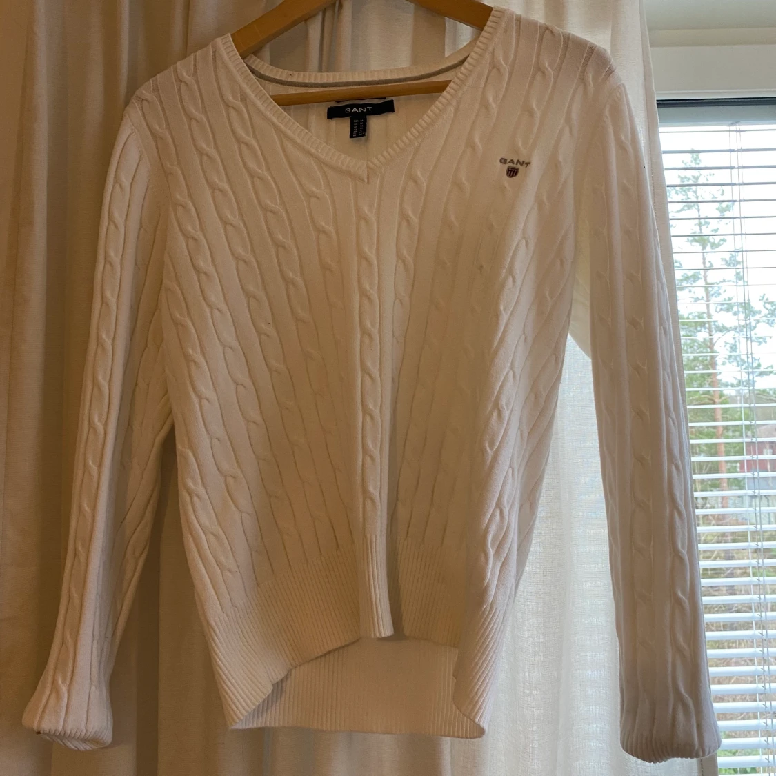 Vit stickad v-ringad gant tröja