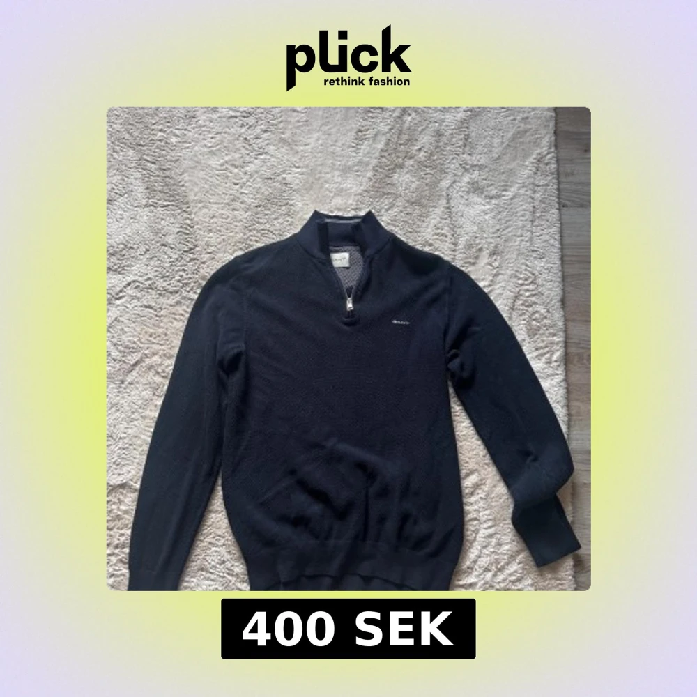 Säljer en mörkblå stickad tröja från GANT i storlek M. Tröjan har halv dragkedja vid halsen, ribbade muddar och diskret GANT-logga broderad på bröstet. Perfekt för lager-på-lager och stilren look. Använd endast ett fåtal gånger.