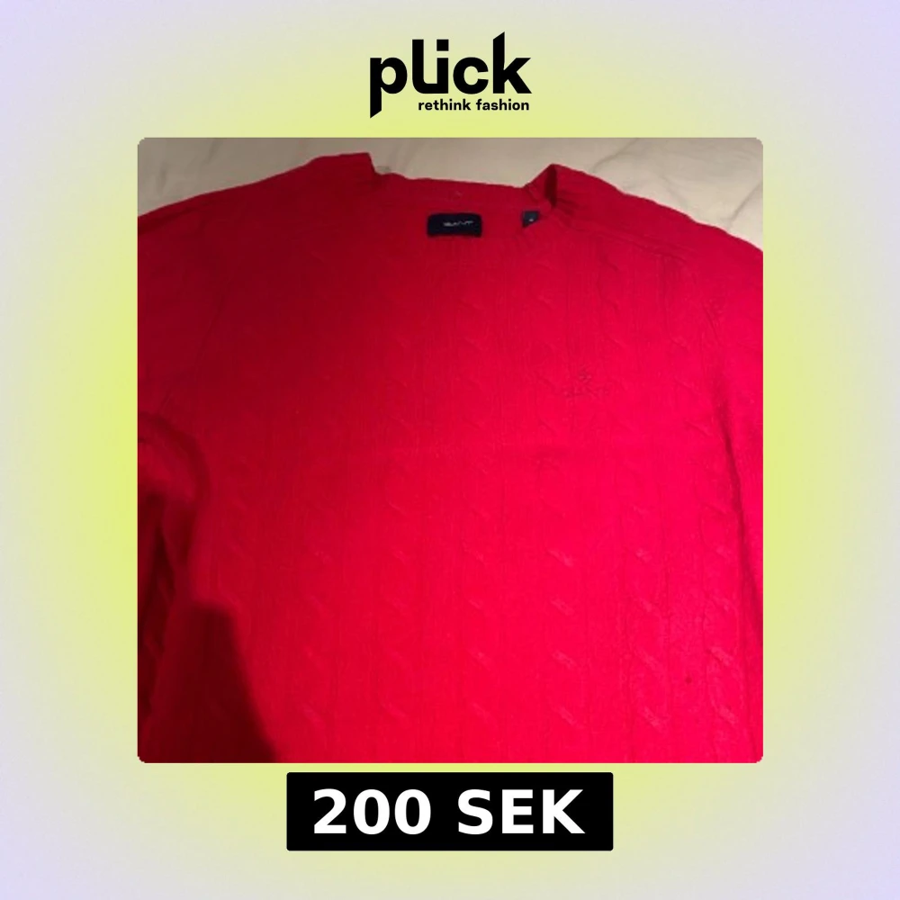 Säljer en klassisk röd kabelstickad tröja från GANT med rund halsringning. Tröjan har diskret broderad logga på bröstet och ribbade muddar vid ärmslut och nederkant. Perfekt för lager-på-lager under kyliga dagar.