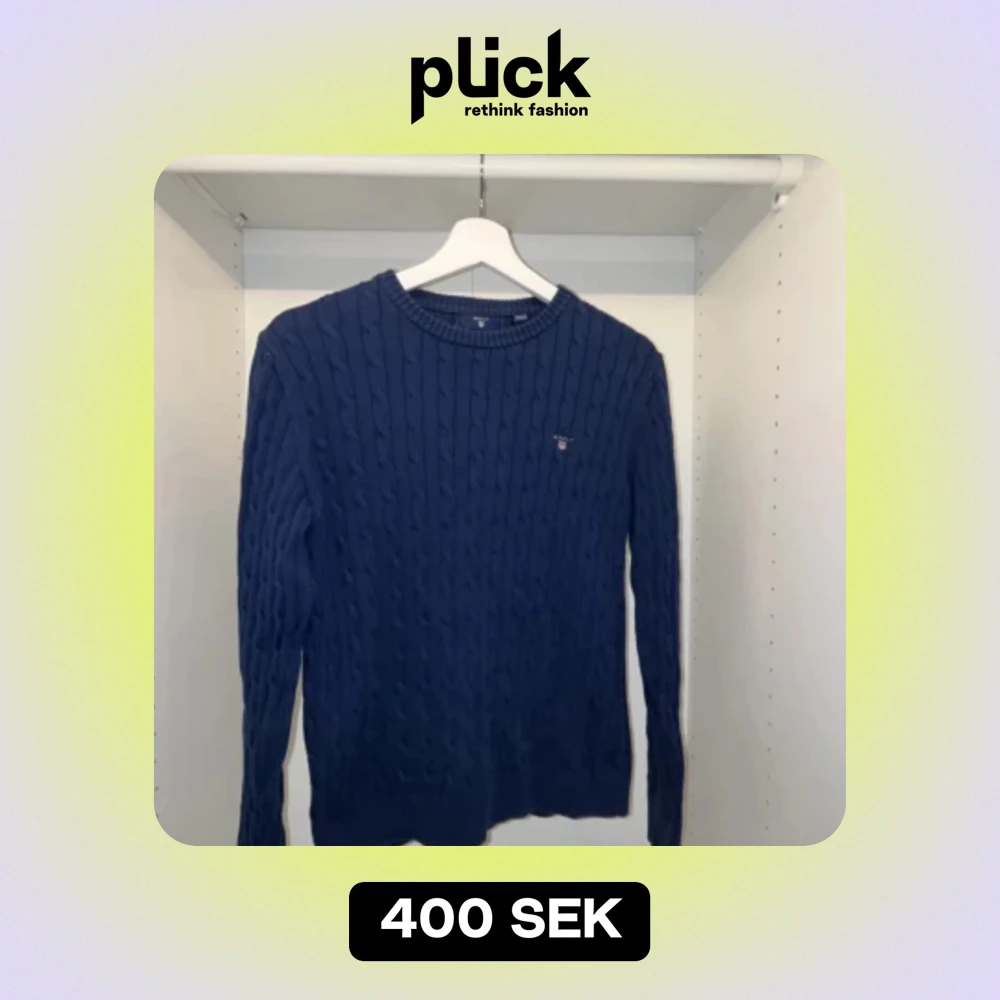 Stickad GANT tröja i marinblått I bra skick, knappt använd. Säljer på grund av att jag vuxit ur tröjan Storlek: 158/164cm Nypris: 900kr Har ni frågor eller funderingar är det bara att höra av er!