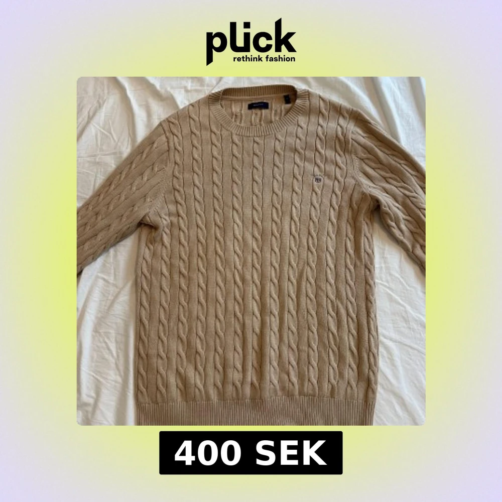 Kabelstickad beige tröja från Gant med rund halsringning och diskret logga på bröstet. Tröjan har långa ärmar och ribbade muddar vid ärmslut och nederkant. Perfekt för lager-på-lager och snygg till jeans eller chinos.