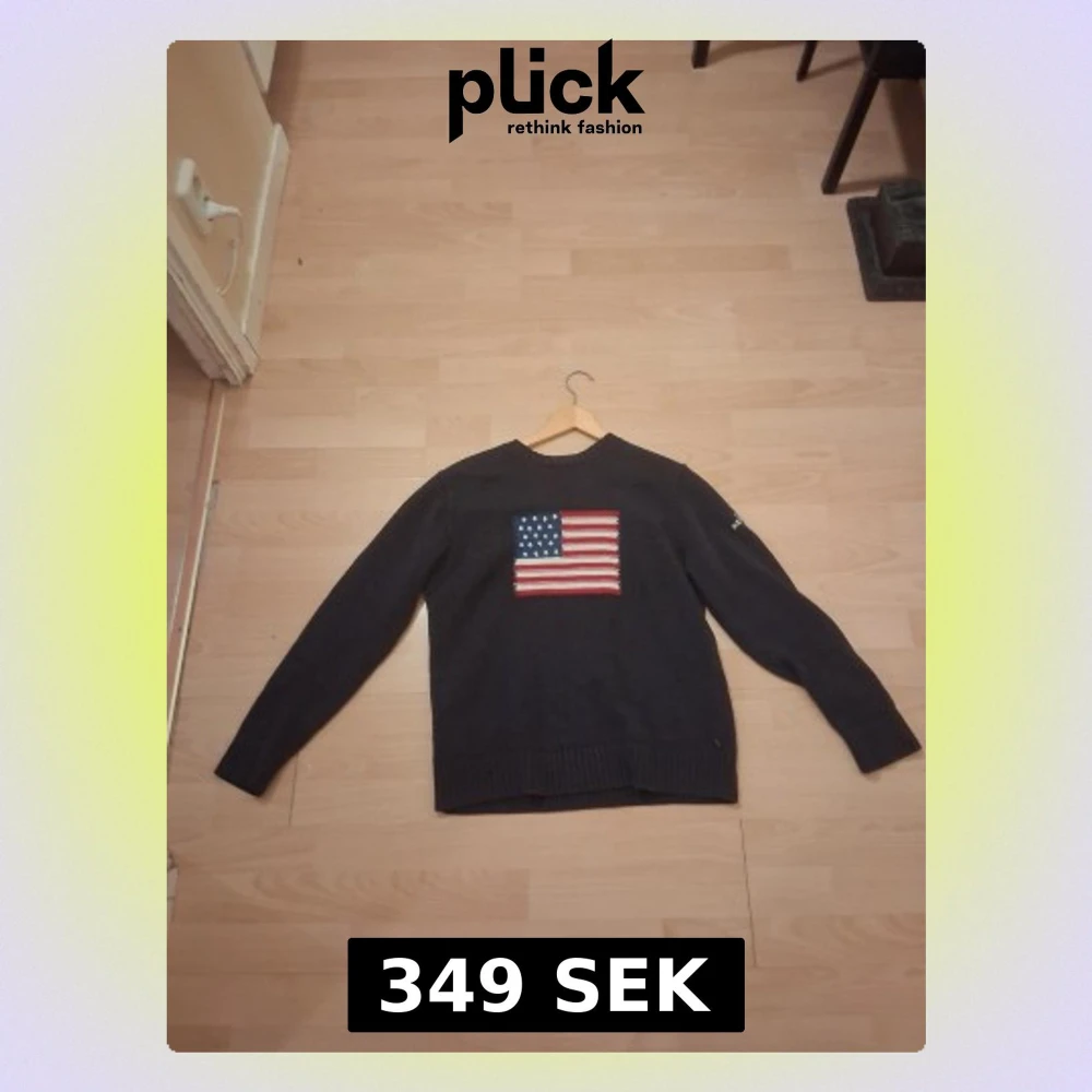 Snygg mörkblå stickad tröja från GANT i 100% bomull. På bröstet finns en broderad amerikansk flagga i rött, vitt och blått. Tröjan har rund hals och långa ärmar med ribbade muddar. Perfekt för dig som gillar klassisk college-stil.