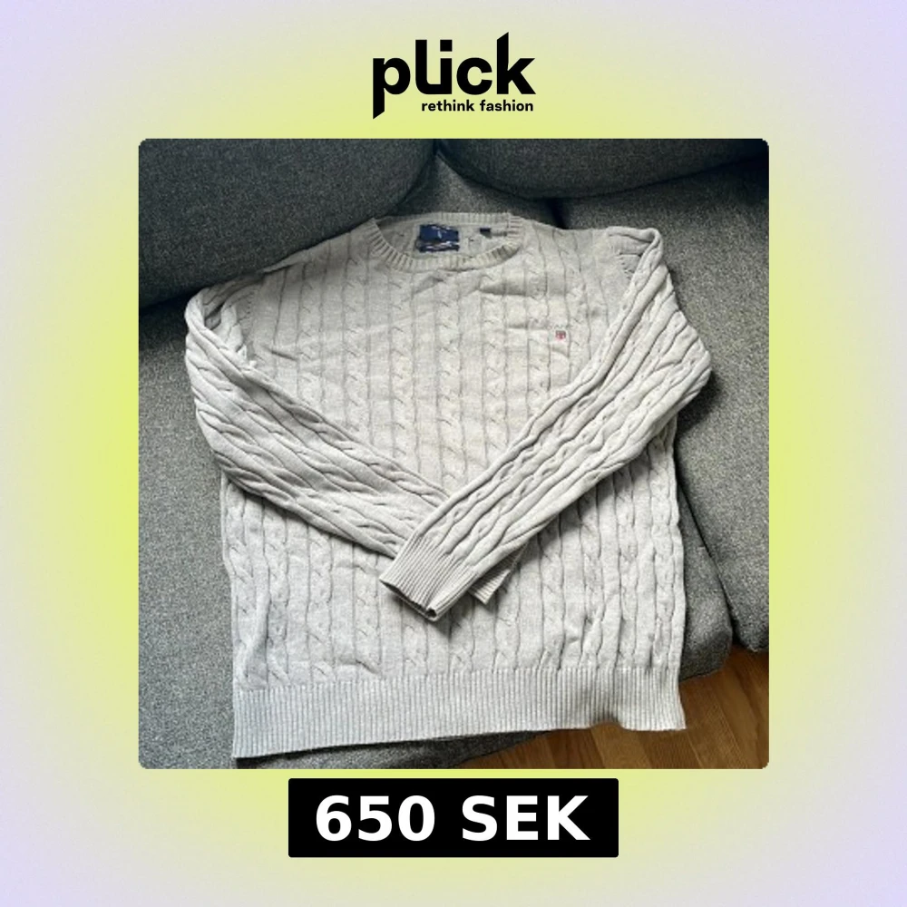 Ljusgrå kabelstickad tröja från Gant storlek M