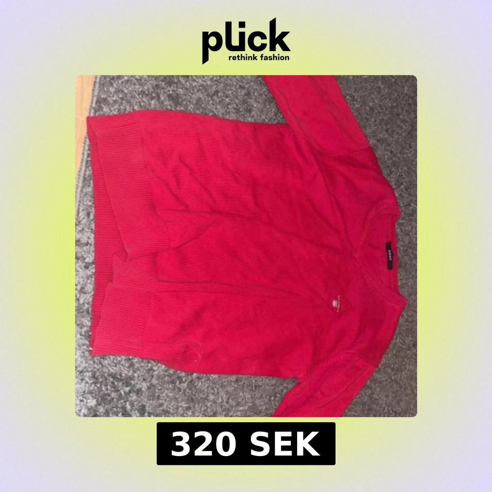 Säljer en klassisk röd stickad tröja från GANT i storlek S. Den är ganska stor för mig (175 cm + 60 kg). Tröjan har rund halsringning, långa ärmar och ribbade muddar vid ärmslut och nederkant. Perfekt för dig som gillar stilrena och tidlösa plagg.