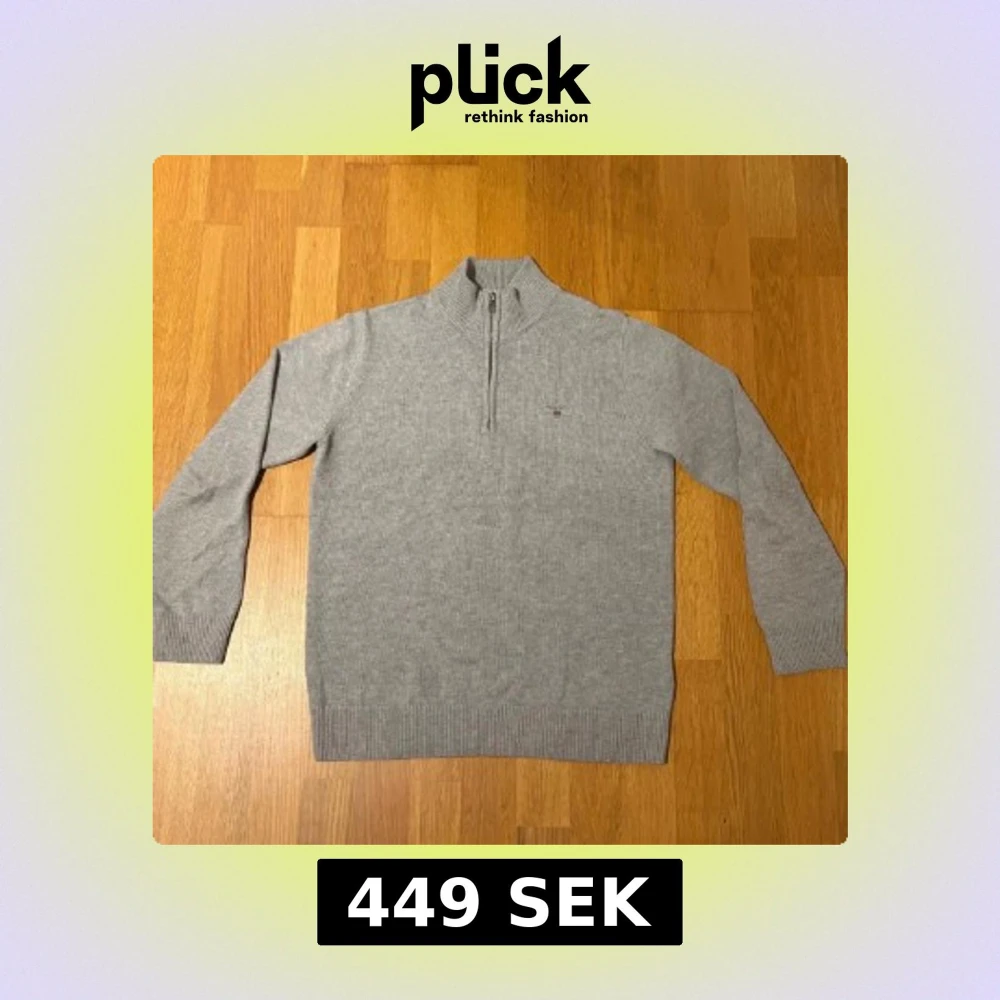Snygg grå stickad tröja från Gant med half zip och hög krage. Tröjan har ribbade muddar och liten broderad logga på bröstet. Perfekt för lager-på-lager och passar till både jeans och chinos. Pris kan diskuteras!