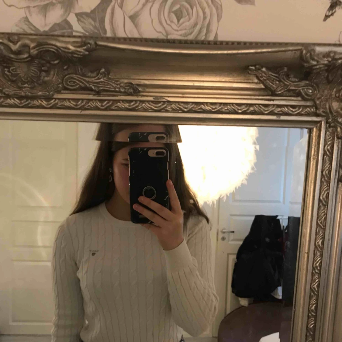 Vit stickad Gant tröja!! Storlek S köpte den för 1000 kr och säljer den för 500kr använd fåtal gånger 💕