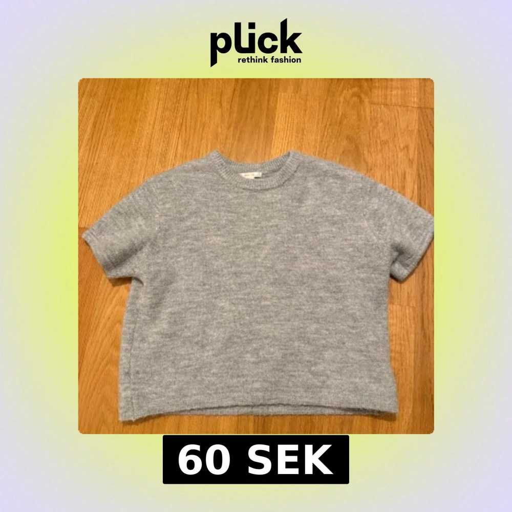 Supermjuk och enkel grå stickad tröja från Gina Tricot. Modellen har korta ärmar, rund och halsringning. Nästan aldrig andvänd, säljer för jag har för mycket kläder.