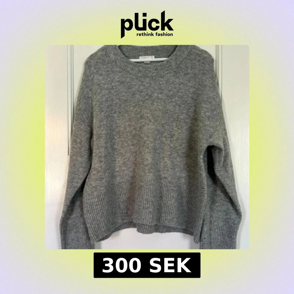 Mysig grå stickad tröja från Gina. Tröjan har en avslappnad passform och rund halsringning, perfekt för lager på lager under kyliga dagar. Den är använd endast ett fåtal gånger.🥰