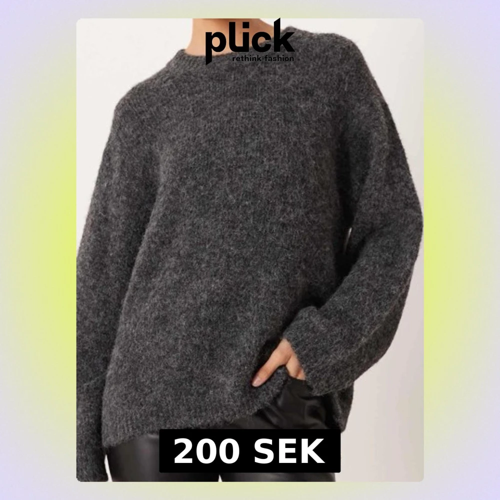 Mysig och fluffig mörkgrå stickad tröja med rund hals och långa ärmar. Perfekt för kyliga dagar och enkel att matcha med både jeans och skinnbyxor. Tröjan har en loose passform som ger en avslappnad vibe.