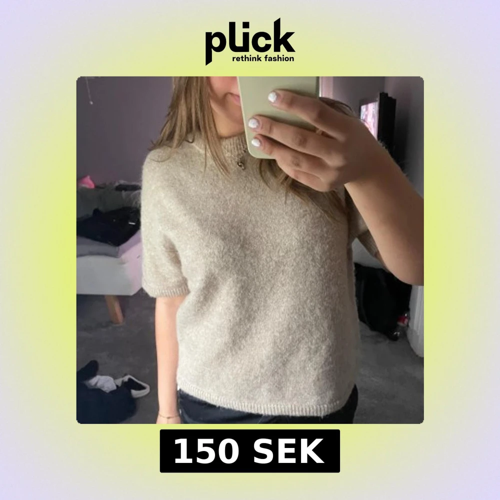 Mysig beige stickad topp med korta ärmar och rund hals. Den har en enkel och clean look med ribbade kanter vid ärmslut och nederkant. Den är från Ginatricot i strl M!💞