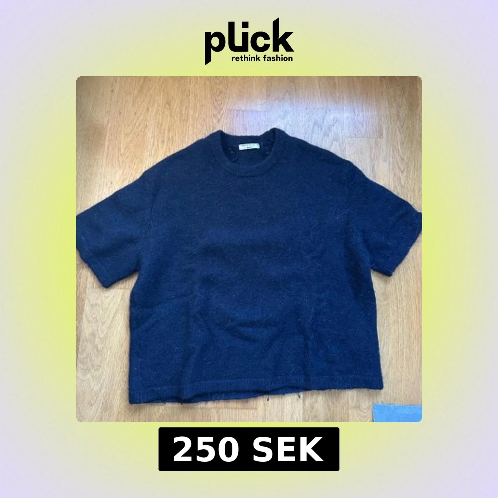 Mörkblå stickad tröja från Gina Tricot i storlek M. Tröjan har rund hals, korta ärmar och en loose passform. Materialet är mjukt och lite luddigt, perfekt för dig som gillar enkel och stilren design.