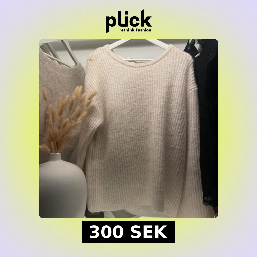 Supermysig vit stickad tröja med lång ärm och öppen rygg som knyts med en bred rosett. Tröjan har en ribbad struktur och en avslappnad passform, perfekt för lager på lager under kyliga dagar| skriv vid intresse💕