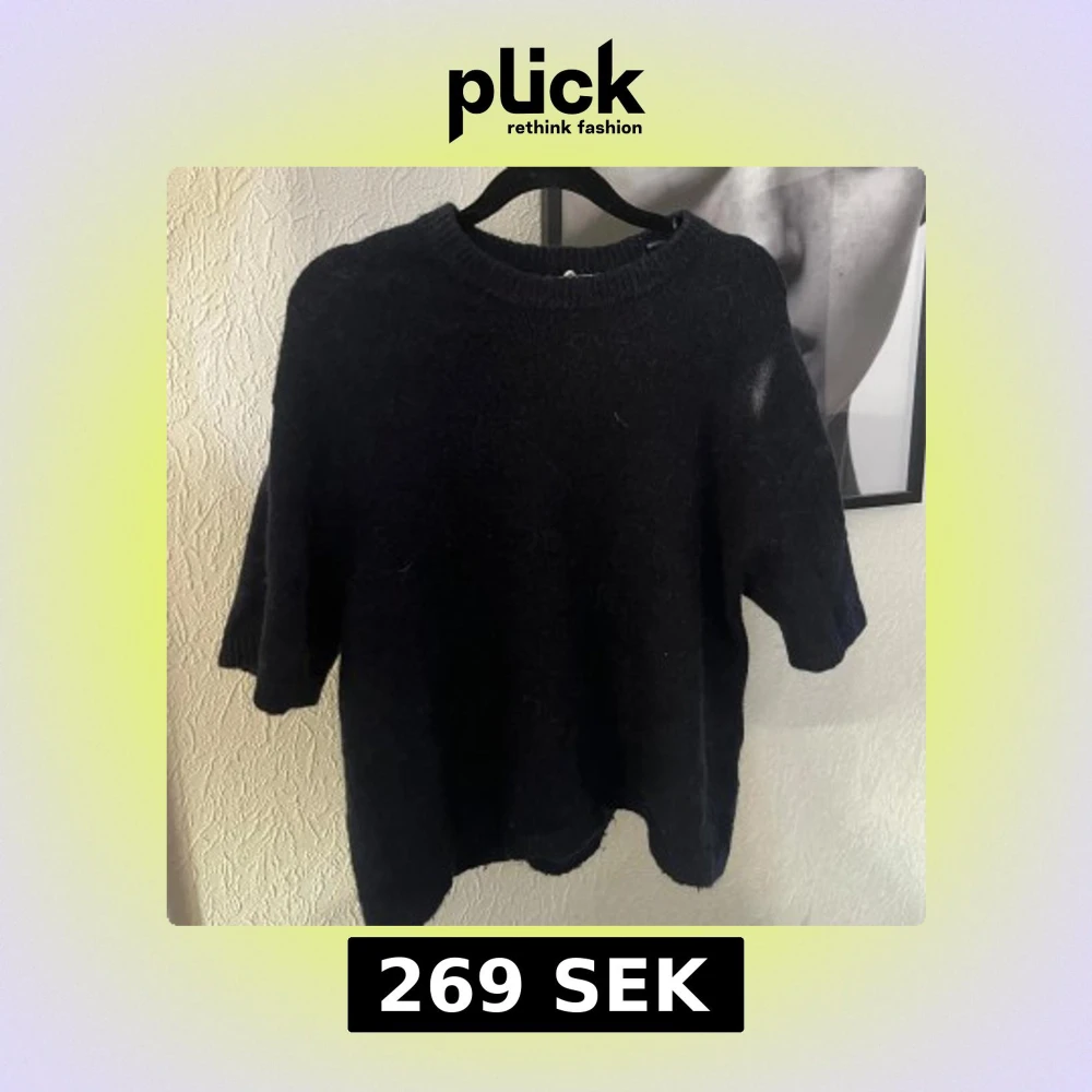En marinblå stickad tröja med korta ärmar och rund halsringning. Perfekt året om 🥹💓