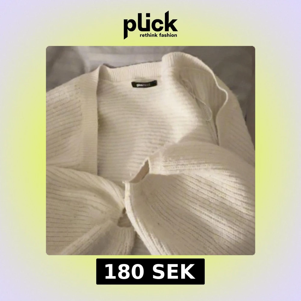 Mysig vit stickad kofta från Gina Tricot i storlek S. Koftan har en öppen front, ribbad struktur och långa ärmar med en relaxed fit. Perfekt att slänga över ett linne eller t-shirt för en chill och stilren look.