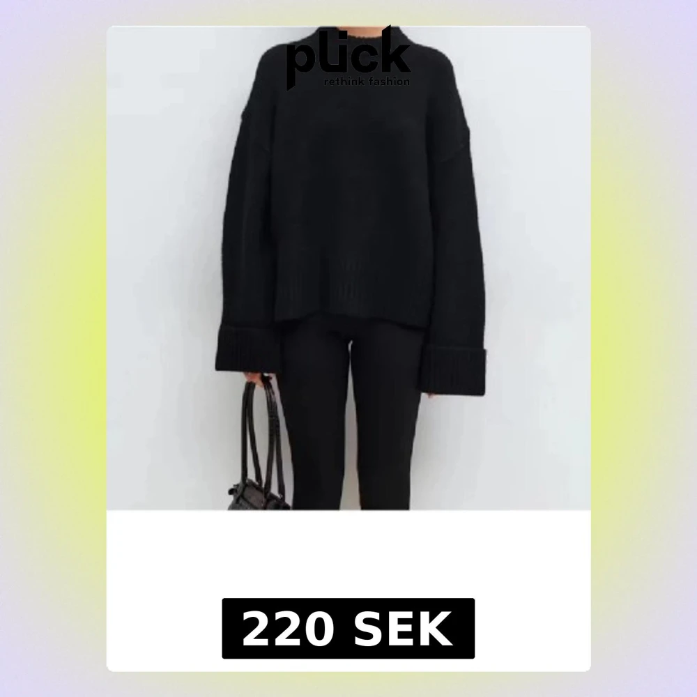 Säljer en svart stickad tröja med oversized passform och långa ärmar med breda ribbade muddar. Tröjan har en enkel design med rund hals och är perfekt för dig som gillar en chill och avslappnad stil. Materialet är mjukt och grovstickat.