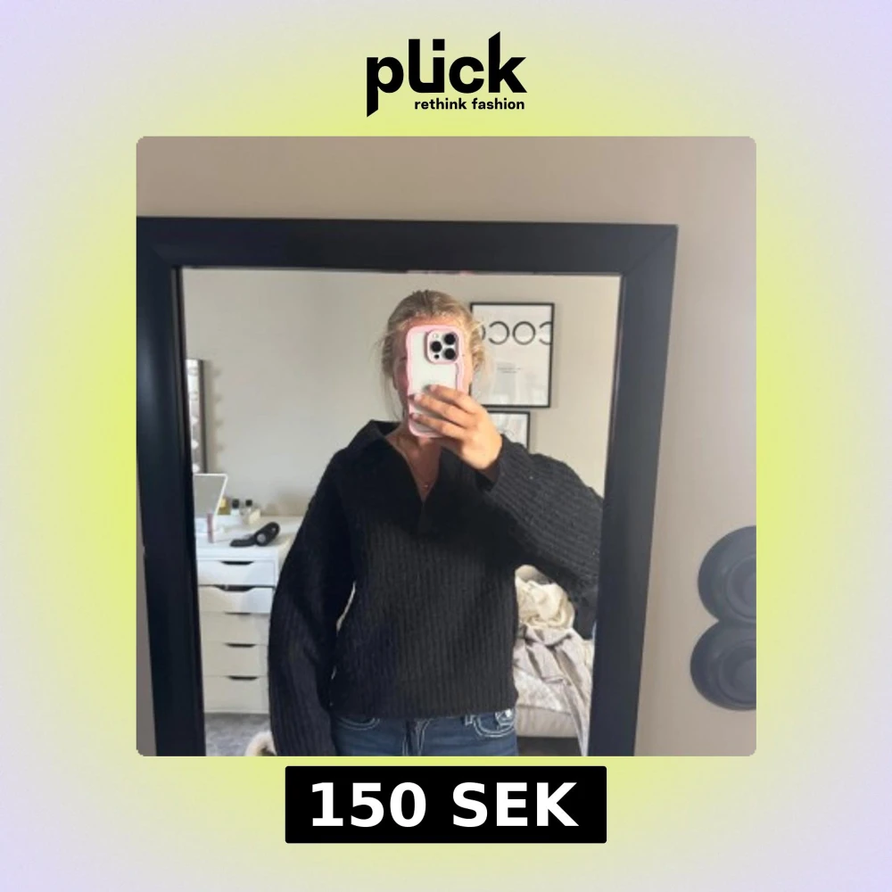 Svart stickad polotröja från Gina Tricot med bred krage och v-ringad öppning. Tröjan har en ribbad struktur.💋