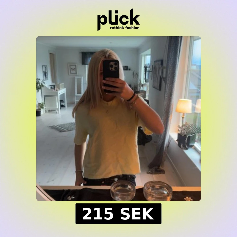 Superfin ljusgul stickad tröja med korta ärmar och rund hals. Tröjan har en avslappnad passform och fräsch look. Från Gina tricot, strlk s🩷