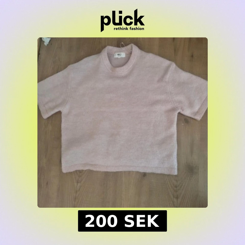 Supermjuk ljusrosa stickad tröja från Gina Tricot i ullblandning. Tröjan har korta ärmar, rund halsringning och ribbade kanter. Perfekt för lager-på-lager och chill vibes.använd några gånger