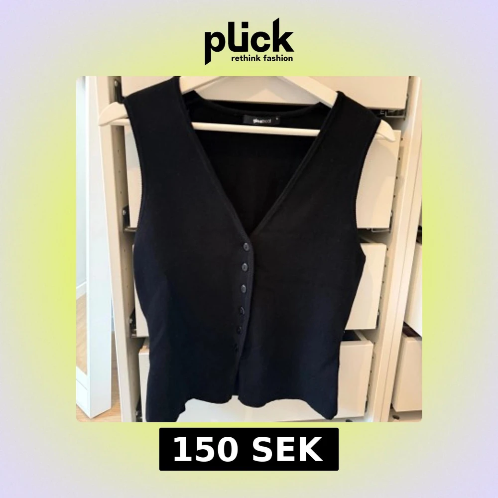Svart stickad väst med v-ringning och knappar framtill från Gina Tricot. Aldrig använd, storlek S.
