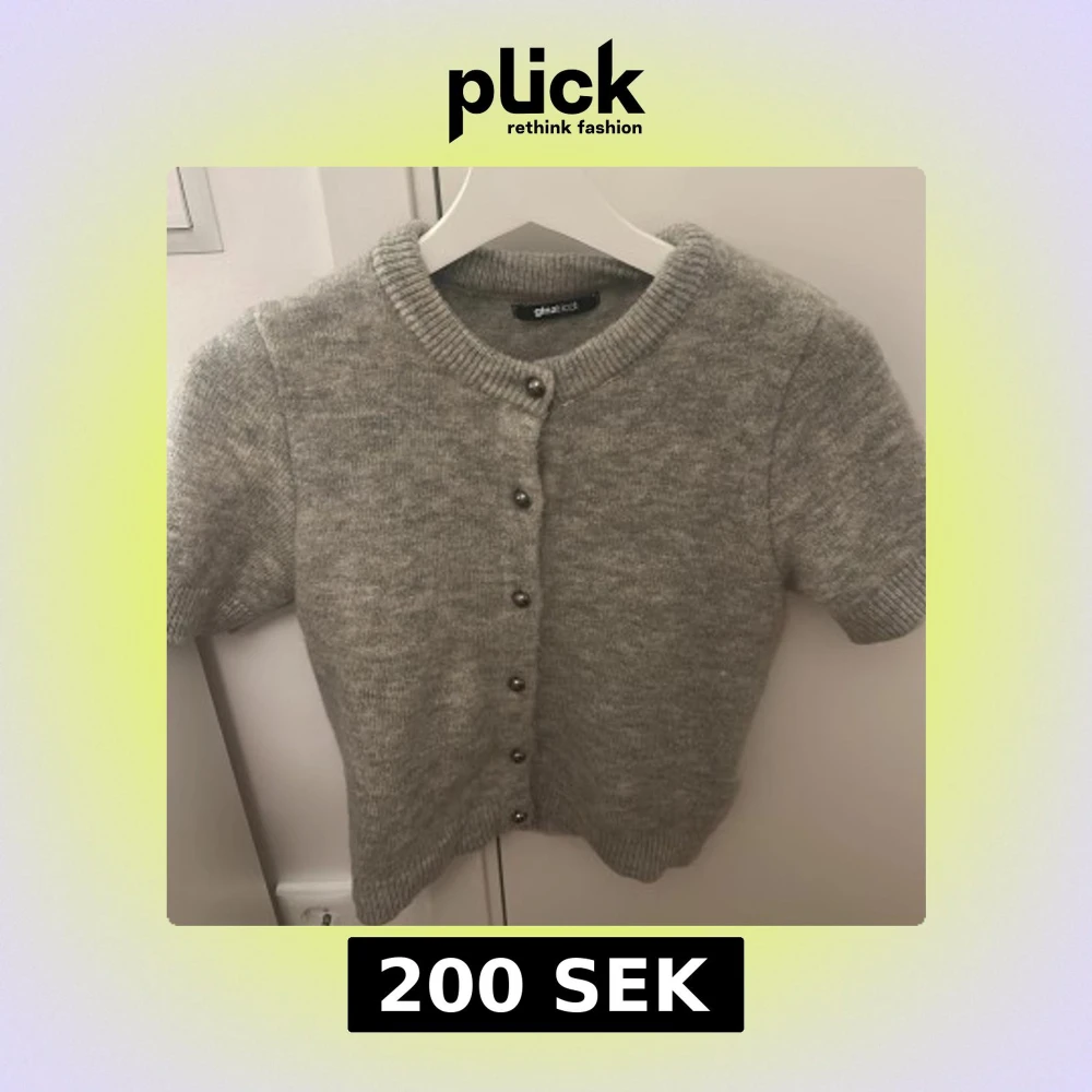 Säljer en mysig grå stickad blus från Gina Tricot med korta ärmar.