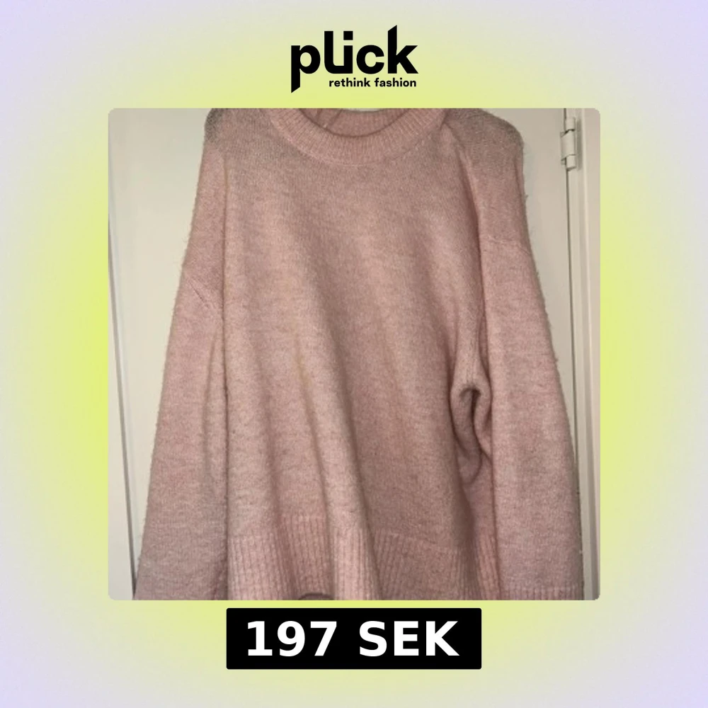 Supermysig ljusrosa stickad tröja med oversized passform och bred ribbad kant nedtill och vid ärmsluten. Perfekt för lager-på-lager och chill dagar. Hög rund halsringning och långa ärmar ger en avslappnad vibe.