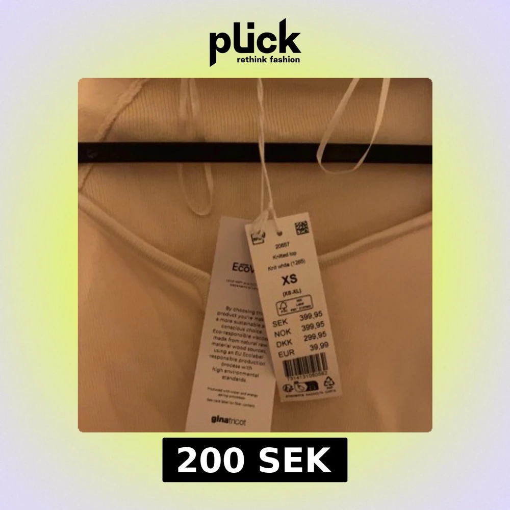 Säljer en vit stickad topp från Gina Tricot i storlek XS. Toppen har lång ärm, croppad passform och en snygg v-ringning. Perfekt att styla med jeans eller kjol för en trendig look.