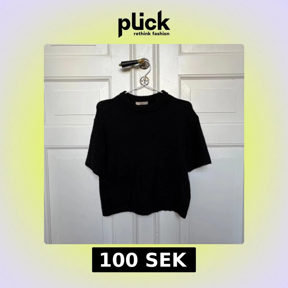 Svart stickad tröja från Gina Tricot i storlek XS. Modellen har korta ärmar och rund halsringning med ribbad kant. Mjuk och lite fluffig känsla, perfekt för lager-på-lager. Enkel och stilren design som funkar till många olika looks. 💕💕