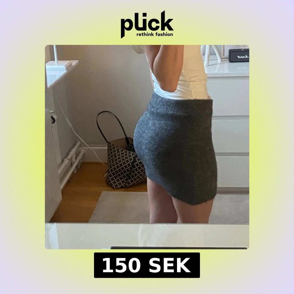 Supermysig mörkgrå stickad minikjol med ribbad midja. Kjolen har en tight passform och är perfekt för dig som gillar en enkel men trendig look. Den är mjuk och skön, och passar perfekt till en basic topp eller en oversized tröja.