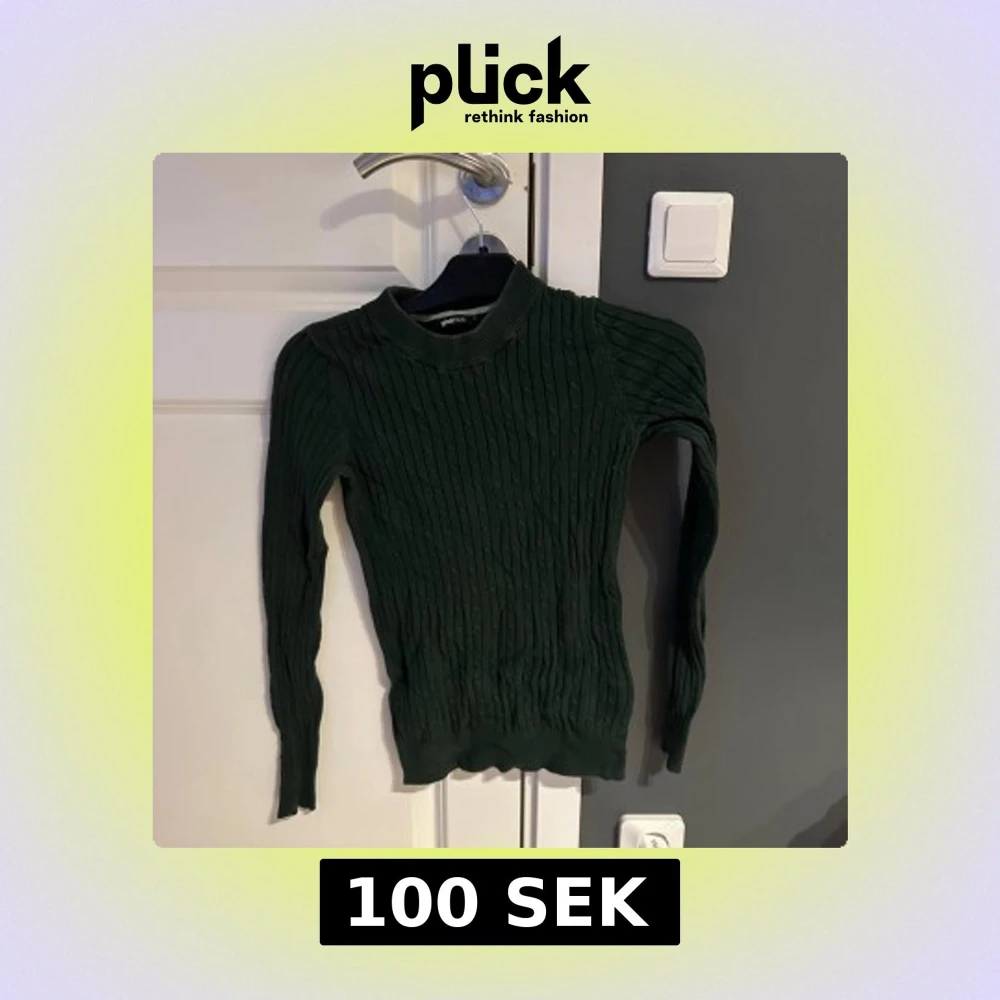 Mörkgrön stickad tröja från Gina Tricot i storlek XS. Tröjan har ett ribbat mönster, rund halsringning och långa ärmar. Perfekt för lager-på-lager och snygg till både jeans och kjol. Enkel och stilren design som funkar året runt.