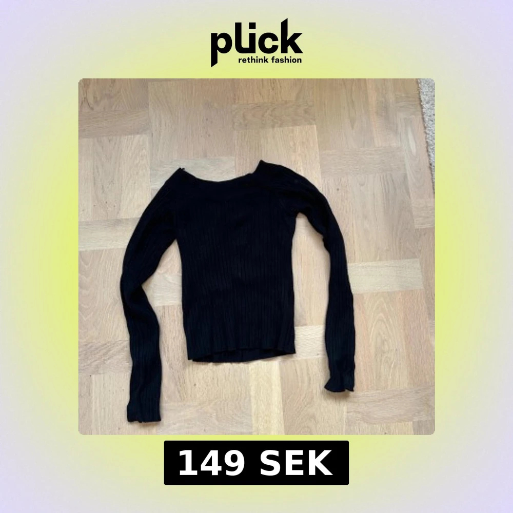 Svart ribbad långärmad tröja från Gina Tricot i storlek XS. Tröjan har en tight passform och är tillverkad i ett stickat material med bred halsringning. Perfekt att styla med jeans eller kjol för en clean look.