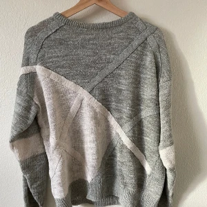 Söt, vintage stickad tröja i vit och ljusblå/grå