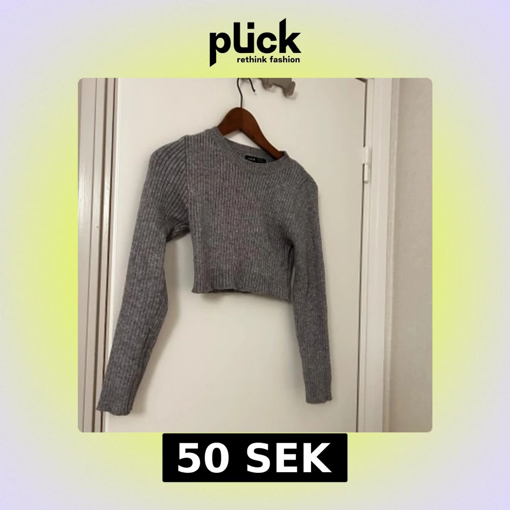 Grå croppad ribbad tröja
