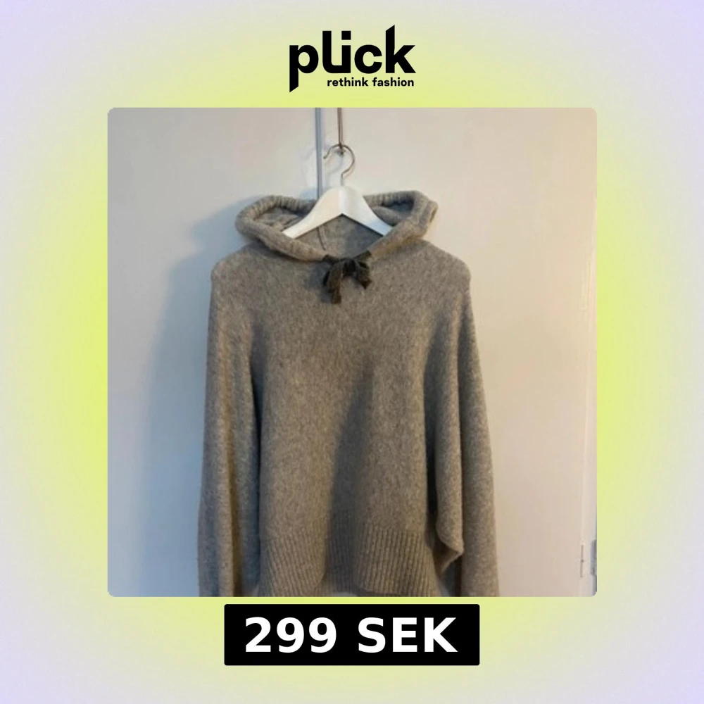 Säljer en mysig grå stickad hoodie från Pringle of Scotland x H&M. Tröjan har en luva med knytband och ribbade muddar.