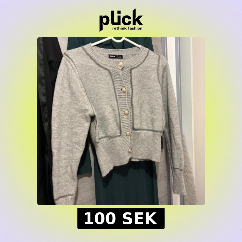 Superfin grå kofta från SHEIN med snygga guldiga knappar framtill. Koftan är stickad, har lång ärm och ribbade detaljer vid hals, knappslå och midja. Perfekt till lager-på-lager och enkel att styla till olika outfits.