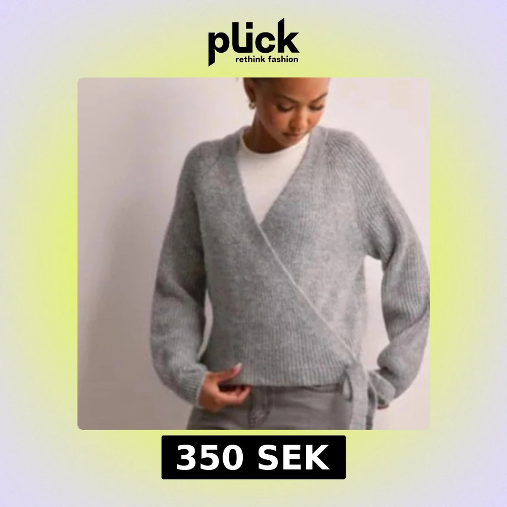 Supermysig grå omlott kofta i stickat material med knyt i sidan. Använd 2 gånger💓