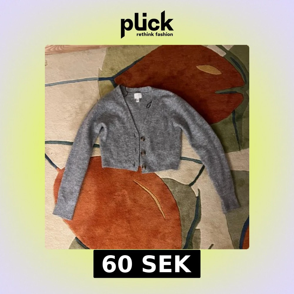 Säljer en grå ribbad kofta från H&M. Den är croppad med knappar framtill och har långa ärmar. Perfekt för lager-på-lager-stil. Passar till både jeans och klänning!