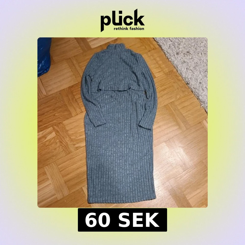 Mysig grå långklänning från SHEIN i storlek S. Klänningen är ribbstickad med lång ärm och hög krage, perfekt för kyligare dagar. Den har en figurnära passform och är tillverkad i ett mjukt, stretchigt material som känns skönt mot huden. Funkar bra vid amning.