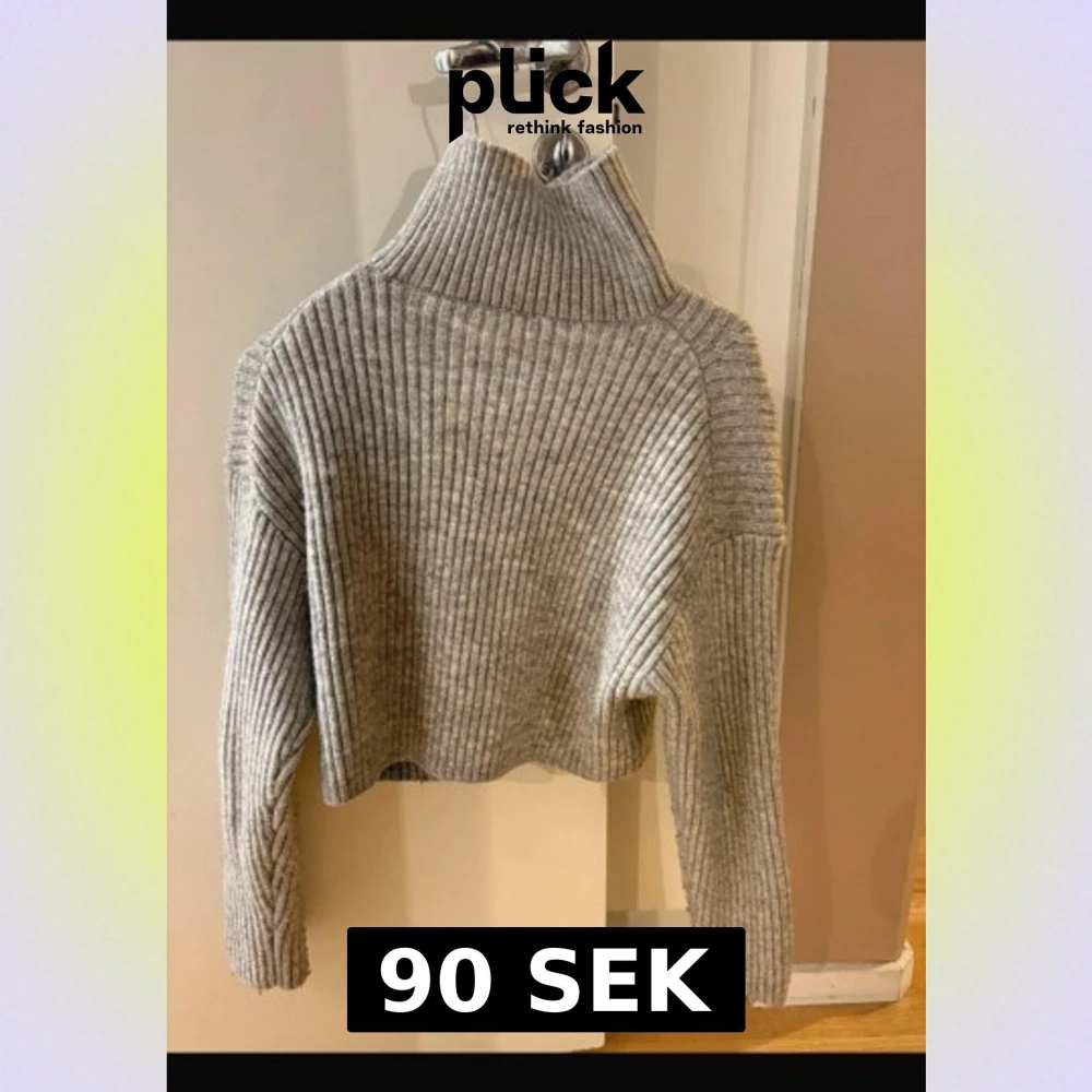 Säljer en snygg grå polotröja från H&M i storlek S. Tröjan är ribbstickad, har hög krage och är lite croppad i modellen. Perfekt för dig som gillar en chill och trendig stil. Långa ärmar och mjukt stickat material gör den superbekväm.
