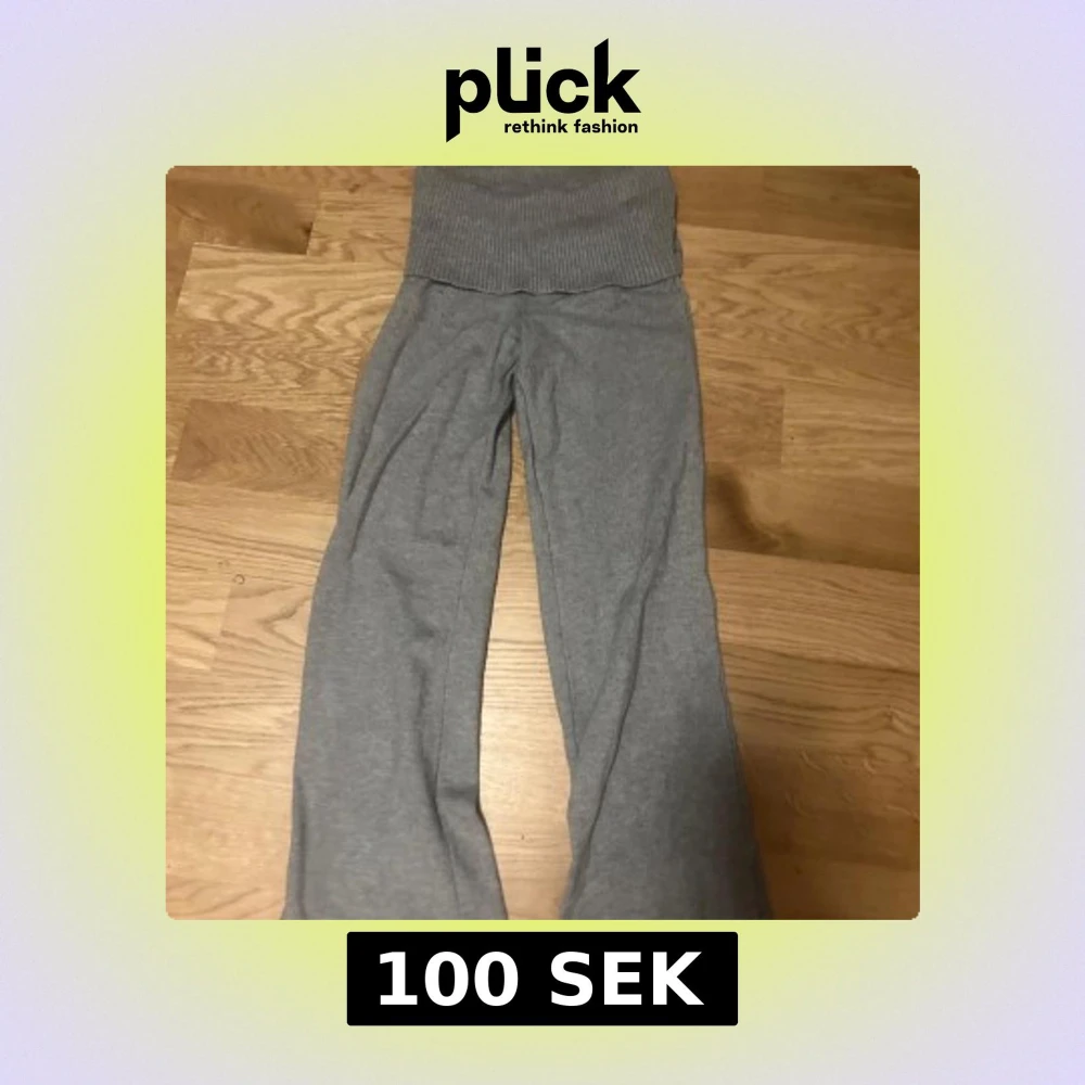Mysiga grå stickade byxor med bred ribbad midja. Byxorna har en rak passform och är perfekta för en avslappnad stil. Materialet är mjukt och stretchigt vilket gör dem bekväma att bära hela dagen.