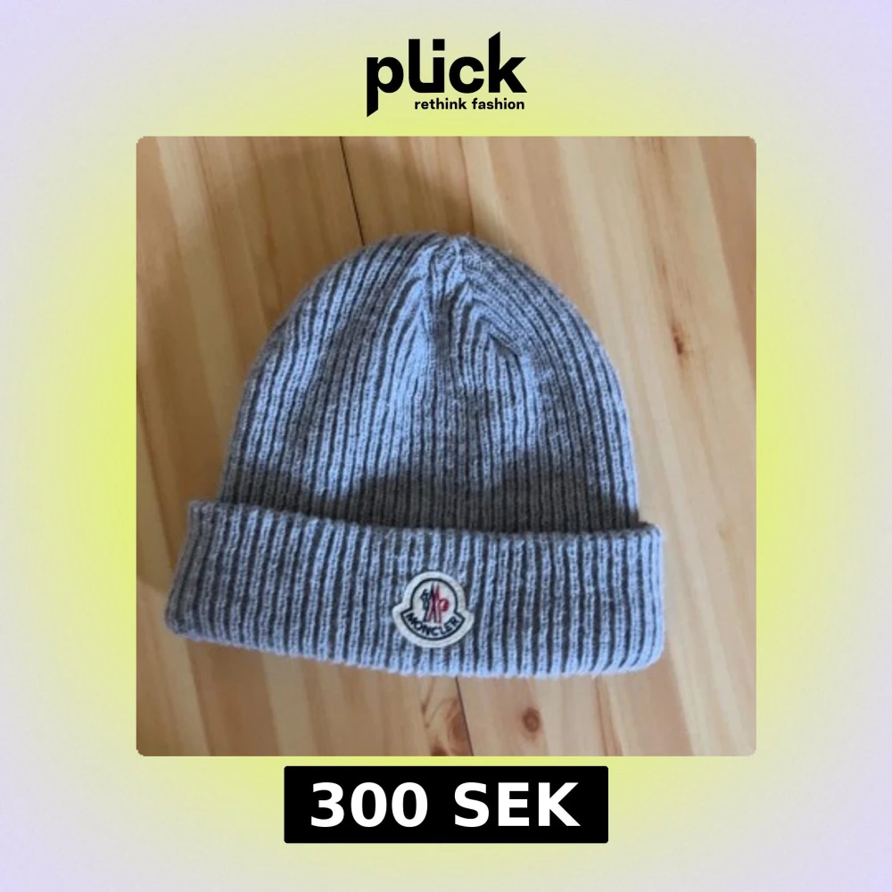 Snygg grå ribbstickad mössa från Moncler med uppvikt kant och klassisk Moncler-logga framtill. Perfekt för kalla dagar och ger en clean look till din outfit. Tillverkad i mjukt material som sitter skönt på huvudet. Pris kan diskuteras